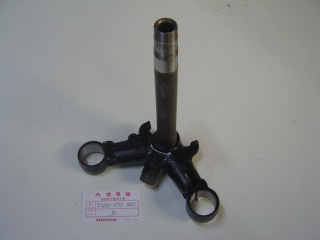 Dans la plupart des cas, après s’être procurée une fourche complète, on remplace l’axe du té inférieur de celle-ci par un axe usiné aux côtes de l’ensemble original et on le fait sertir. On peut donc alors monter la nouvelle fourche dans la colonne de direction avec les roulements d’origine du modèle.